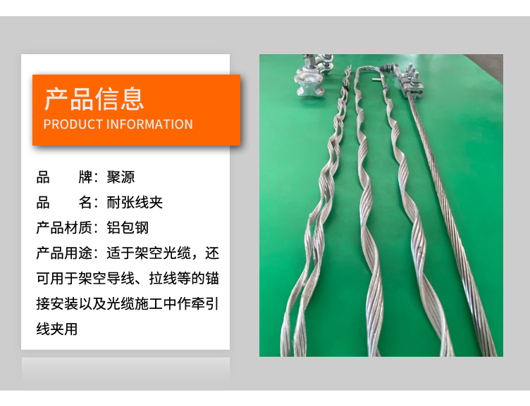 耐张线夹用于转角、接续,及终端的连接。螺旋铝包钢线具有极强的耐张强度,无集中应力,对光缆起到保护和辅助减振的作用。