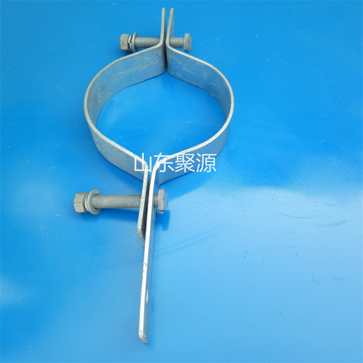 结构配件:组成箍身主体,紧固螺栓(卡扣)常见的有扁铁抱箍 ,以Q235扁铁为丰材制作,外表热镀锌处理,圆钢抱箍,以圆钢为主体握弯(可套丝),外作的抱箍。表热镶锌。不锈钢抱箍,以304/201不锈钢棍、304/201不锈钢带为主体制作的抱箍。