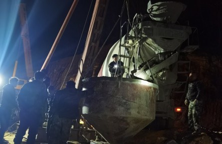 图为中铁二十五局建筑者在开展深更半夜灌桩工作