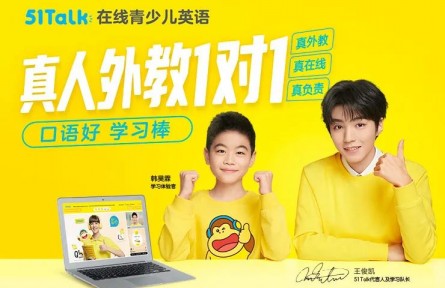 ·51Talk品牌代言人及学习培训大队长易烊千玺,和51Talk学习培训体验官韩昊霖。