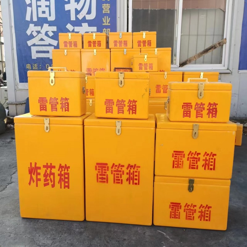 玻璃钢炸药箱,以玻璃钢这非金属材质打造,它不仅具备高强度、耐腐蚀、防火等优秀性能,还具有轻质的特点。这种材质广泛应用于各个领域,尤其在矿用炸药箱方面,玻璃钢材质更显优势。矿山井下可能含有瓦斯等易燃易爆气体,一有静电火花,就可能引发爆炸。玻璃钢炸药箱却不会因摩擦产生静电,从而大大降低了爆炸风险。