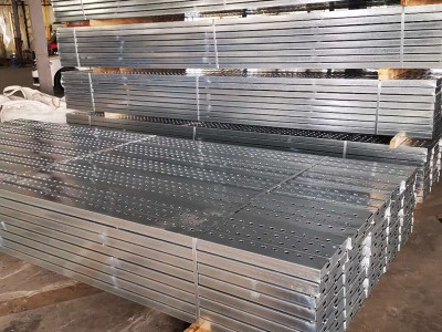 钢跳板是一种新型建筑施工用具的材料。一般称为钢制脚手板,建筑钢跳板,钢踏板,镀锌钢跳板,热镀锌钢踏板。用途广泛:建筑业,造船业,石油平台、电力等行业 钢跳板具有防火、防积沙、重量轻、耐腐蚀、耐碱且抗压强度高、表面凹凸孔、两侧工字型设计效果比同类产品尤其显著,孔距整齐成型规范、外形美观、经久耐用。底部特有的漏沙孔工艺起到了防积沙作用。使用钢跳板时,搭建脚手架的钢管可以适当减少,并能提高搭建效率。价格比木板低,多年后报废仍可回收35%-40%的投资等优点。 产品优势 钢跳板 回收率高,运用年限长。 钢跳板 表面的排凸孔,起到防滑、防变形。中间加强板增加了牢度和强度、使其外型美观大方、坚固耐用。 钢跳板材 通过热镀锌技术,运用寿命可达5-8年左右。 运用钢跳板已成为国内外的一种趋势,为施工作业的方便与快捷,起了很大作用。