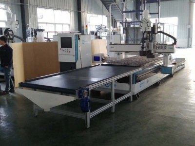 四工序数控开料机自动上下料机器是一款高效型多功能数控设备。高配机型速度70-100米,8小时产量可加工120张板以上。搭载四个6kw风冷主轴,在加工板式家具领域四个主轴都可以实现打孔切割处理,板式家具生产中遇到的孔位大小都可处理。同时四工序数控开料机还能很好的用在橱柜门的生产上,四个主轴可以用来做门型,当遇到门型需要的刀型在四个及四个以下时,四工序开料机完全满足需要,也可以解决简单的橱柜门板雕刻铣形,实现真正意义上的全屋定制。省人工、省料、省时间,安全可靠、环保无污染,在综合应用方面还是比较好的。