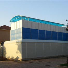 声屏障主要由钢结构立柱和吸隔声屏板两部分组成,立柱是声屏障的主要受力构件,它通过螺栓或焊接固定在道路防撞墙或轨道边的预埋钢板上;吸隔声板是主要的隔声吸声构件,它通过高强弹簧卡子将其固定在H型立柱槽内,形成声屏障。声屏障的设计已较为充分地考虑了高架高速道路、城市轻轨、地铁的风载、交通车辆的撞击安全和全天候的露天防腐问题。它外形美观大方,制作精致,运输、安装方便,造价低,使用寿命长,特别适用于高架高速道路和城市轻轨、地铁的防噪声使用,是现代化城市的隔声降噪设施。 铁路声屏障,高度在1m一5m间,覆盖有效区域平均降噪达10~15dB(A)(125Hz~40000Hz,1/3倍频程), 达20dB(A)。一般来讲,声屏障越高,或离声屏障越远,降噪效果就越好。