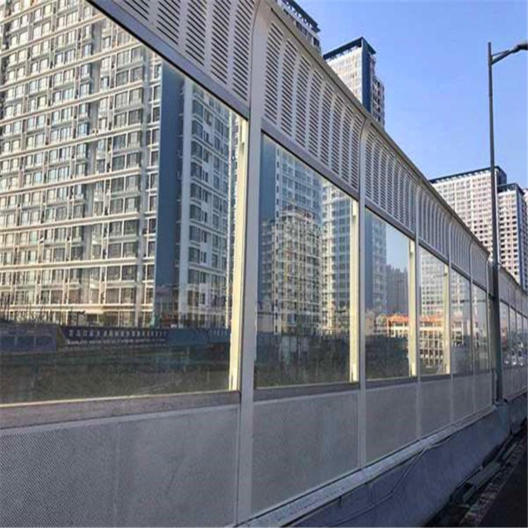 声屏障主要由钢结构立柱和吸隔声屏板两部分组成,立柱是声屏障的主要受力构件,它通过螺栓或焊接固定在道路防撞墙或轨道边的预埋钢板上;吸隔声板是主要的隔声吸声构件,它通过高强弹簧卡子将其固定在H型立柱槽内,形成声屏障。声屏障的设计已较为充分地考虑了高架高速道路、城市轻轨、地铁的风载、交通车辆的撞击安全和全天候的露天防腐问题。它外形美观大方,制作精致,运输、安装方便,造价低,使用寿命长,特别适用于高架高速道路和城市轻轨、地铁的防噪声使用,是现代化城市的隔声降噪设施。 铁路声屏障,高度在1m一5m间,覆盖有效区域平均降噪达10~15dB(A)(125Hz~40000Hz,1/3倍频程), 达20dB(A)。一般来讲,声屏障越高,或离声屏障越远,降噪效果就越好。