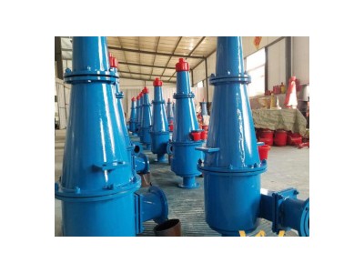 旋流器是一个带有圆柱部分的锥形容器。椎体上部分内圆锥部分叫液腔。圆锥体外侧有一进液管,以切线方向和液腔连通。容器的顶部是上溢流口,底部是底流口(也叫排料口)。一个空心的圆管沿旋流器轴线从顶部延伸至液腔里,这个圆管称为溢流管,也叫旋流定向器。其内部形成的上溢流通道,以便泥浆上溢排出。旋流器的尺寸由椎体的最大内径决定。泥浆在旋流的作用下,椎体中间产生一个低压区,形成一个气柱,造成真空,起抽吸作用,把轻泥浆从上口排出,重颗粒,甩向桶壁,沿筒壁下滑,从下口排出。