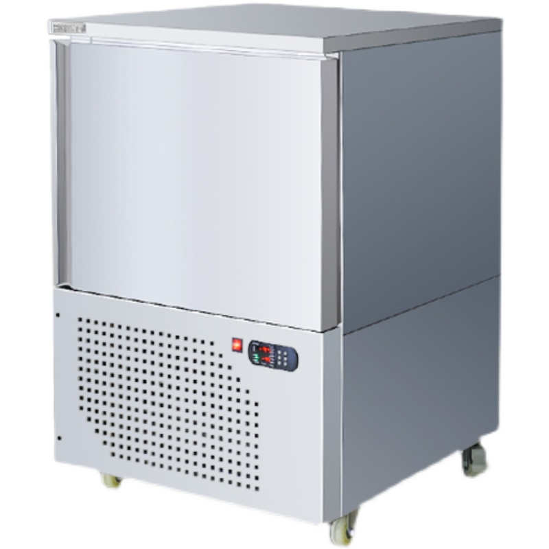 速冻柜速冻柜(冷冻柜)的一种。是一种用于存储各种需要冷冻的食品专业储藏工具。主要是在商业上,用于将食物快速的制冷,达到保持食物的营养不流失,口味新鲜的效果。制冷系统由4个基本部分即压缩机、冷凝器、节流部件、蒸发器组成汽化(液体变成汽体)是吸热量;液化(汽变成水)是放热量,无论是速冻柜、冰箱还是空调都是一样的工作原理如下 (低温低压)制冷剂(气体)→压缩机→(液化)液体的制冷剂(高温高压)→散热器(冰箱的表面放热量出去)→液体的制冷剂(低温高压)→毛细管→冰箱内的蒸发器(绕在箱内壁的铜管)气化也就是吸热→冰箱内的温度就会下降→(气化)制冷剂(低温低压)→压缩机 就这样从复循环的把箱内的热量以制冷剂为价质往外搬。必须定期清洗和消毒。这样,您可以确保食品的高品质和遵循卫生标准。 ·机器清洗后用清水冲洗干净,定期消毒饮用水。 ·食品中的脂肪是真菌和细菌滋生的温床。为了避免污染,所有和食品原料接触的部位,必须彻底彻底清洁和消毒。不锈钢,塑料,橡胶组件,这些组件的设计有利于清洁,但不能绝对防止霉菌和细菌形成。