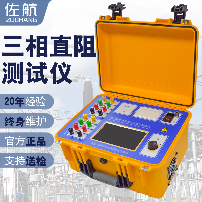 变压器的直流电阻是变压器制造中半成品、成品出厂试验、安装、交接试验及电力部门预防性试验的必测项目,能有效发现变压器线圈的选材、焊接、连接部位松动、缺股、断线等制造缺陷和运行后存在的隐患。为了满足变压器直流电阻快速测量的需要,我公司利用自身技术优势研制了变压器直流电阻测试仪。该仪器是集助磁法测试、三相测试(Yn,Y、△)和消磁功能于一体的新一代快速测试仪,是测量大型电力变压器直流电阻的理想设备。屏幕采用真彩色大屏幕高分辨率液晶显示屏,触控加飞梭旋钮操作,方便现场使用。具有中文菜单提示功能,操作简便直观,一次接线完成所有直阻测试项目,测试速度快,准确度高,量程宽。
