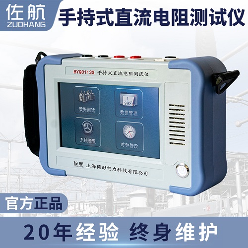 变压器直流电阻是变压器制造中半成品、成品出厂试验、安装、大修、改变分接开关后、交接试验及电力部门预防性试验的必测项目。可以检查绕组接头的焊接质量和绕组有无匝间短路,可以检测电压分接开关的各个位置接触是否良好以及分接开关实际位置与指示位置是否相符,引出线是否有断裂,多股导线并绕是否有断股等情况。为了满足变压器直流电阻快速测量的需要,我公司研制了佐航BYQ3113S手持式直阻测试仪。该仪器采用全新电源技术,具有体积小、重量轻、输出电流大、重复性好、抗干扰能力强、保护功能完善等特点。整机由高速单片机控制,自动化程度高,具有自动放电和放电报警功能。仪器测试精度高,操作简便,可实现变压器直阻的快速测量。