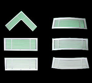 线形散流器,突出了线形设计的特点,适用于室内线形和环形分布的送、回风装置。按风口叶片的角度可分为0度和30度;按送风的方向又可分为单向和双向;按弧形的方向课分为内弧、外弧和低弧;按内芯是否活动可分为活动内芯和非内芯;也可制作成L形。用于转角处的风口。该风口可安装在侧墙、地板及天花板上。该风口单件最大长度为3米,如需要,可分段拼接。