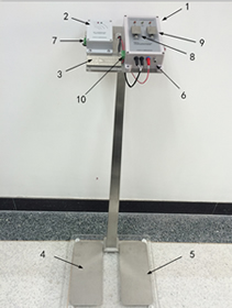 5、表头测量接入电极,依次为左脚、右脚、防静电服、大地插孔
