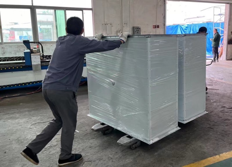 复合防火风管目前市面上操作多样化,有的沿用原来的铁皮风管加防火棉的做法,这种较为老套且产品容易老化容易脱落,后期影响美观,目前使用较广、市场接受程度较高的为镁质成品复合风管,可做单面彩钢或双面彩钢,耐火时限有0.5H、1H、1.5H、2H、3H,根据设计要求不同,满足项目要求,配套相应检验报告,产品可开料到工地再组装节省运输成本,也可直接成品出厂,到项目上直接安装即可,选择多样化,满足各方需求。