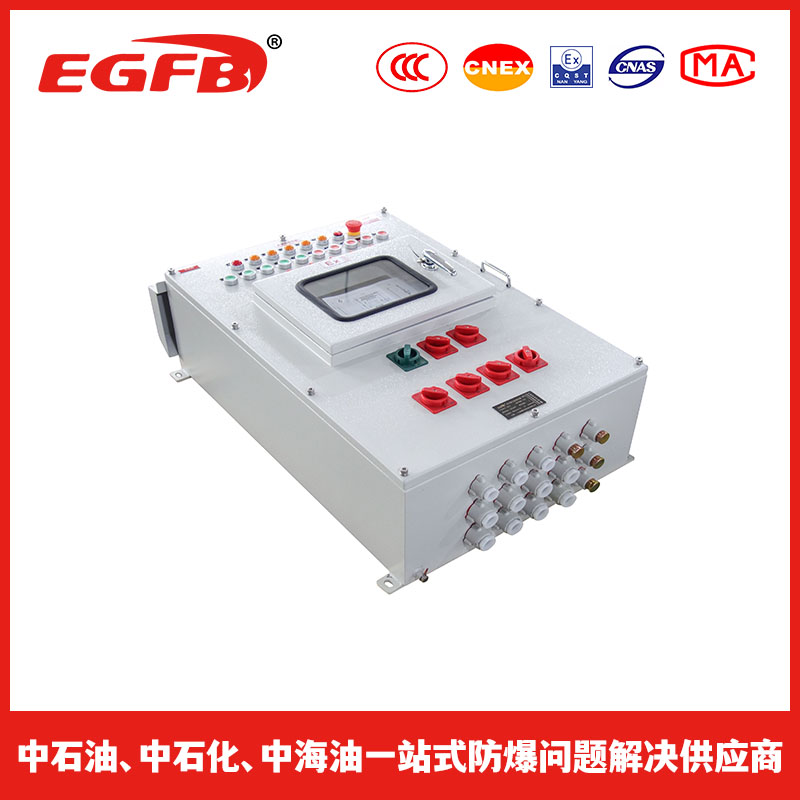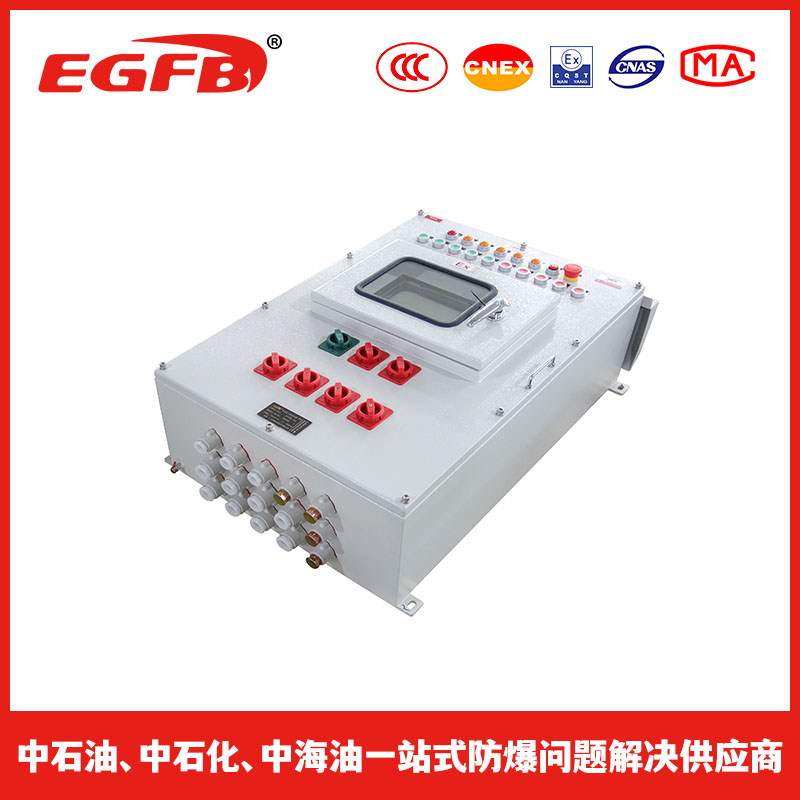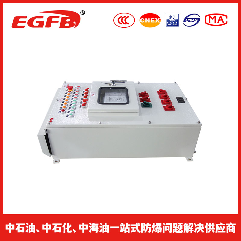 BXK防爆控制箱用途和适用范围BXK系列防爆控制箱(以下简称防爆控制箱)是按GB3836.1~2设计和制造,配电箱主要用于1区或2区中含有爆炸性混合物为Ⅱ类B级T4组及以下爆炸危险场所,适用于可燃性粉尘环境20区、21区、22区,适用于温度组别为T1—T6的环境,作为交流50Hz,额定电压至380V,线路中远距控制信号、电气等,并有信号指示灯。