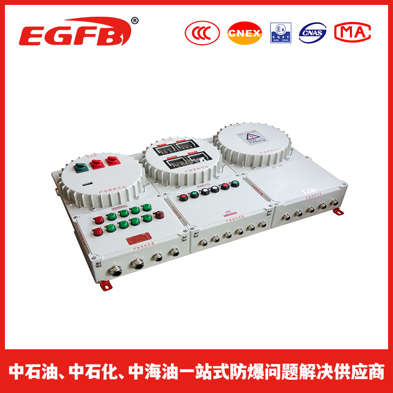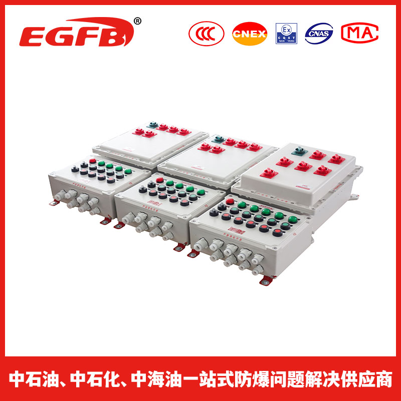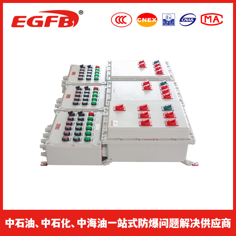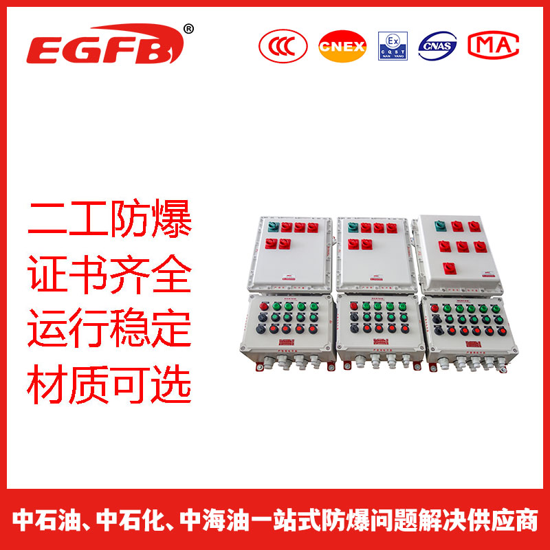 BXK防爆控制箱用途和适用范围BXK系列防爆控制箱(以下简称防爆控制箱)是按GB3836.1~2设计和制造,配电箱主要用于1区或2区中含有爆炸性混合物为Ⅱ类B级T4组及以下爆炸危险场所,适用于可燃性粉尘环境20区、21区、22区,适用于温度组别为T1—T6的环境,作为交流50Hz,额定电压至380V,线路中远距控制信号、电气等,并有信号指示灯。