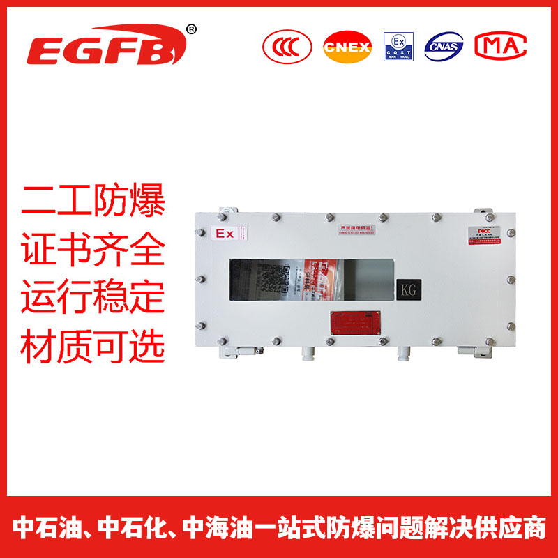 BXK防爆控制箱用途和适用范围BXK系列防爆控制箱(以下简称防爆控制箱)是按GB3836.1~2设计和制造,配电箱主要用于1区或2区中含有爆炸性混合物为Ⅱ类B级T4组及以下爆炸危险场所,适用于可燃性粉尘环境20区、21区、22区,适用于温度组别为T1—T6的环境,作为交流50Hz,额定电压至380V,线路中远距控制信号、电气等,并有信号指示灯。