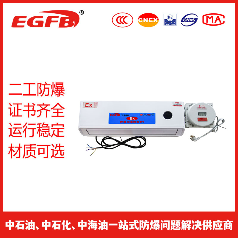 portant;"="" style="margin: 0px; padding: 0px; line-height: 26px !important;">产品具有制冷制热和自动除霜功能,压缩机、风机等都经过特殊的防爆处理,防爆类型为整机防爆。防爆产品可应用于石油、化工、医药、科研、军事、危险仓库等易燃易爆的混合性气体环境中使用。在结构上采用隔爆型、本安型、浇封型等复合防爆技术,控制端全由本安型控制,不产生任何电火花,使用方便安全,采用高效多翅式换热器,冷煤通过时与空气的接触更充分,能大幅度的提高空调的制冷制热效果,手动控制和遥控两种。防爆空调未取得生产许可证不得生产及销售。